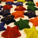 2) Stelle di colori a cera create con i residui dei colori fusi insieme in uno stampo da ghiaccioli in silicone. L’idea è di mypaperpony. Il tutorial in italiano è disponibile anche nel mio sito a questa pagina: riciclare i colori a cera