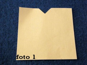 Sul margine superiore tagliate via un triangolino in modo da ottenere la forma della foto 1.