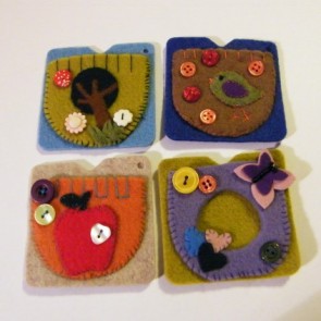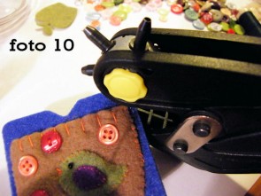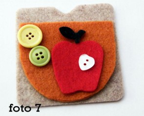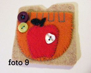 Ritagliate i pezzettini di feltro sottile nella forma che più vi piace e realizzate una composizione (foto 7).