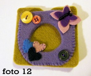 Su una tasca potete ritagliare l’interno a forma circolare, così potete utilizzare il quadratino come portafoto (foto 12).