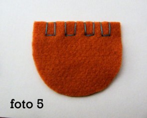 Sul bordo superiore della tasca realizzate qualche lungo punto come decorazione (foto 5).