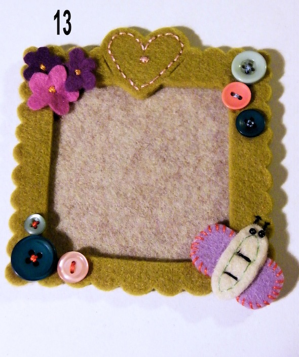 1) Ritagliate una farfallina o apina e cucitela su un angolo, in basso, del portafoto;