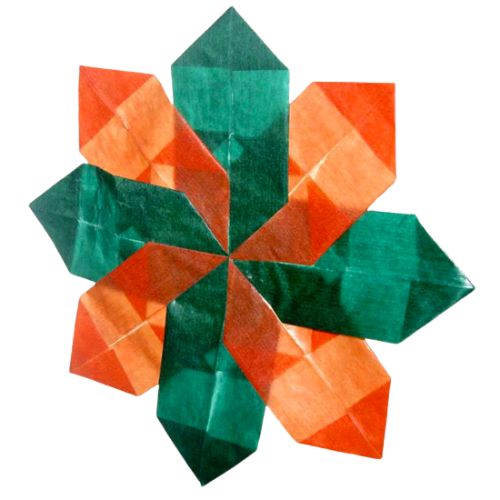 9) Quando avrete completato la piegatura di tutte e otto le punte potrete incollarle insieme come spiegato per la prima stella. Ed ecco il risultato!