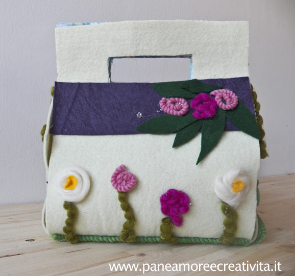 Ecco come appare una volta ultimate le cuciture: come potete vedere nella foto metà casetta rimane aperta per poter giocare.
