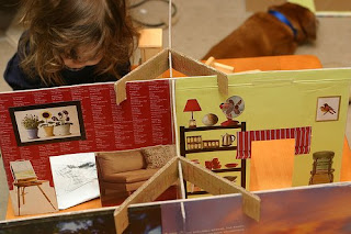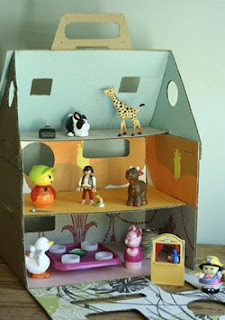 Con il cartone riciclato si possono creare un’infinità di giocattoli, anche questa casa è stata costruita riciclando questo materiale. Come si può vedere dalla foto i vari cartoncini sono stati collegati fra loro da un gioco d’incastro che crea equilibrio e solidità. Gli ambienti, che riproducono le stanze della casa, sono stati decorati con delle foto recuperate da vecchi giornali.