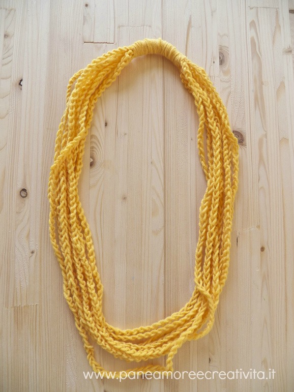 Per creare questa collana guarda questo tutorial: https://www.paneamoreecreativita.it/blog/2012/09/catenella-uncinetto/