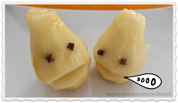 Ho trasformato 2 piccole pere in 2 fantasmini da mangiare, pochissimi passaggi per creare una ricetta di Halloween da paura da presentare ai bambini!