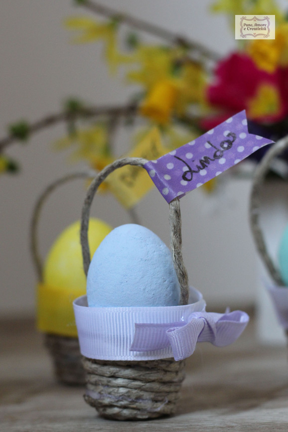 In ogni cestino ho inserito un piccolo ovetto (acquistati da Casa Cenina ), che avevo colorato in precedenza con gli acrilici.